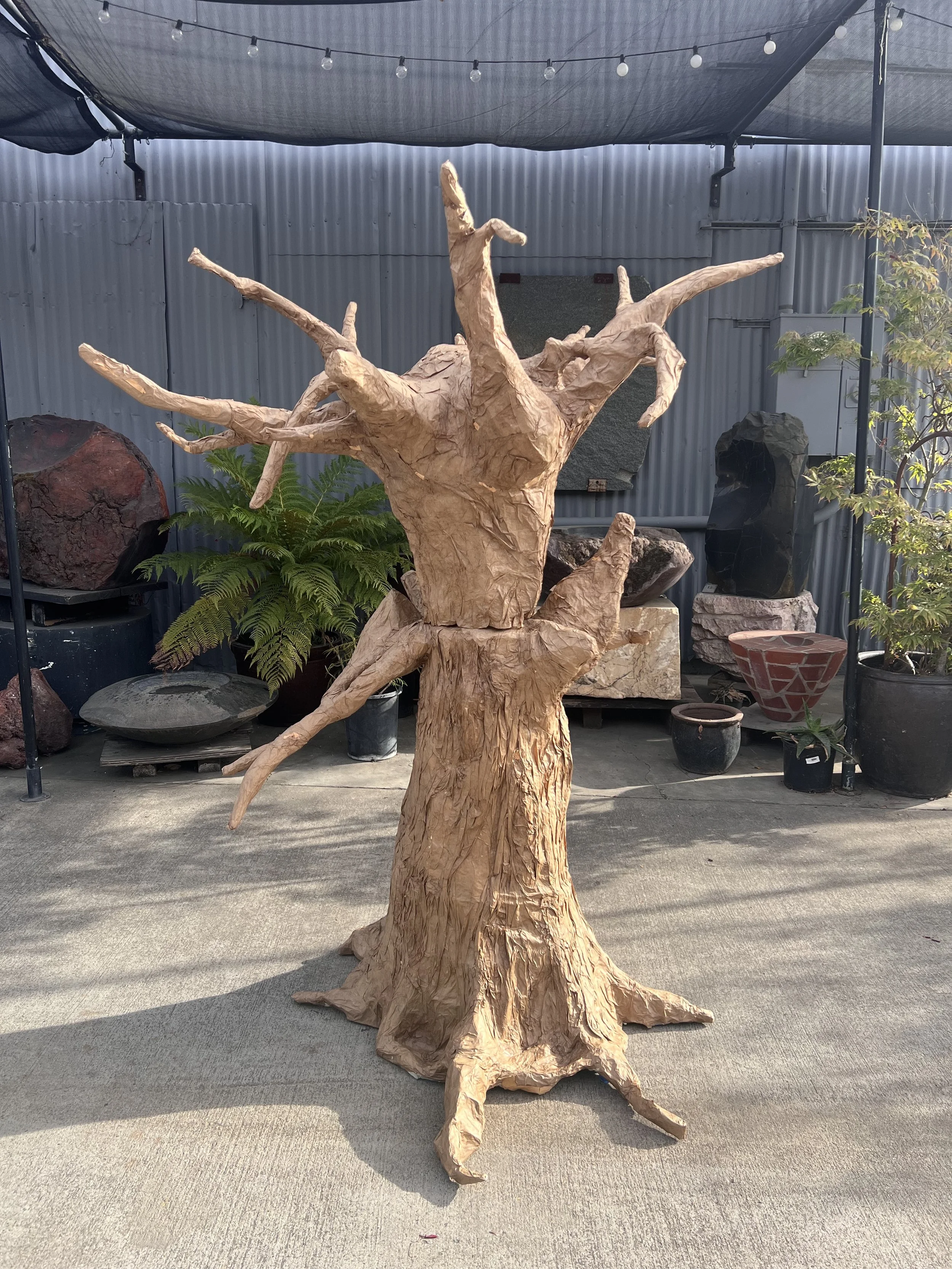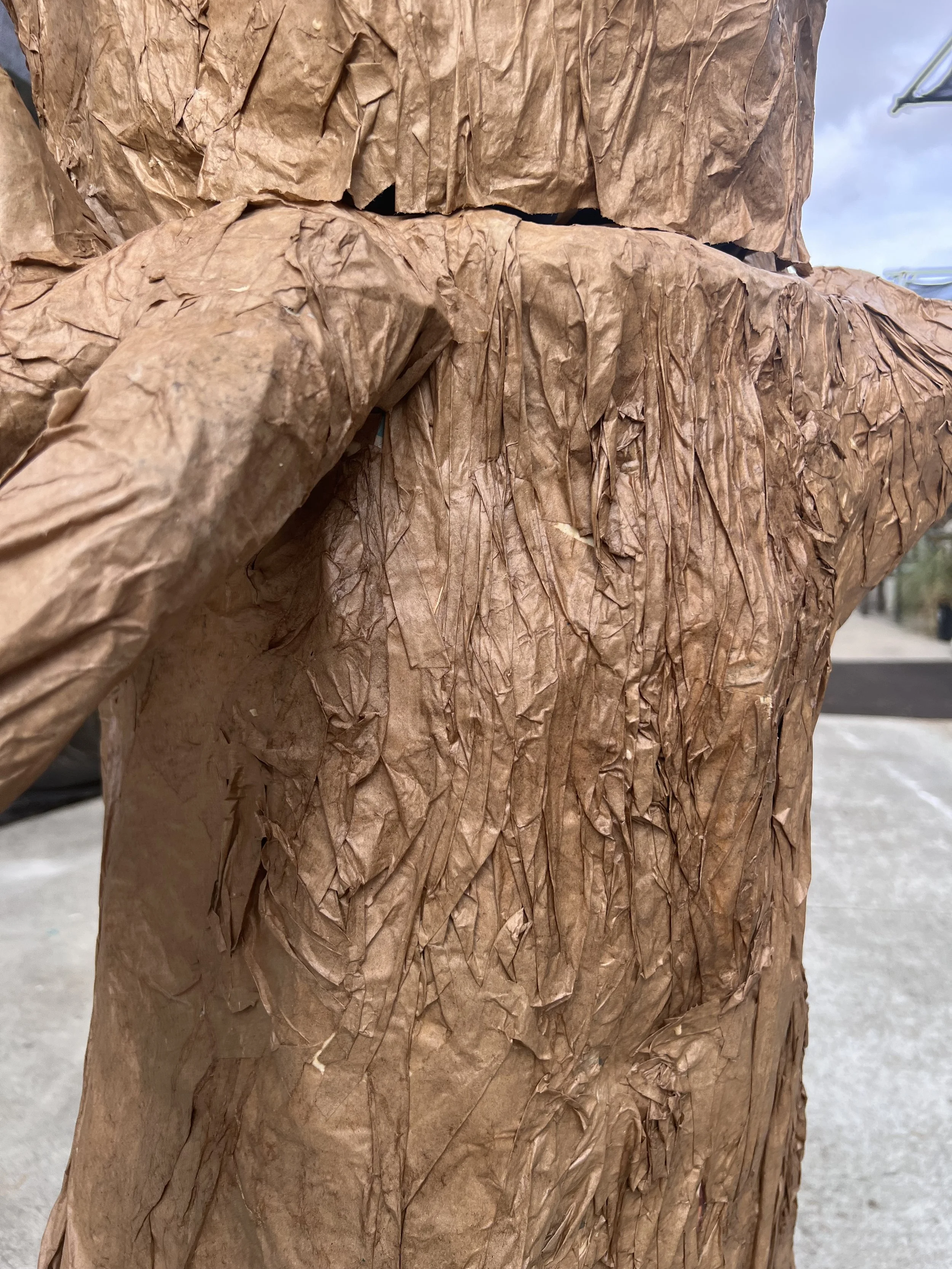 This art installation continues the tradition of resisting erasure by honoring the hundreds of Palestinian family bloodlines who have been wiped out by the military assault in Gaza. Indigenous activists and scholars today continue to align themselves with efforts to call for an arms embargo in order to end the violence enacted upon civilians in Gaza and the West Bank. Citing the common experience of living under settler colonial realities, Native American activists today are using their voices to humanize Palestinians and document the erasure of entire families over the past year. Roots of Resistance symbolizes the memory of these families as it calls upon the viewer to take note of how many indigenous bloodlines have been wiped out in Gaza over the past year alone. The tree is a space to honor those families and the communities that will forever be impacted by their absence. We offer this tree as a space to mourn and to find the courage to speak out for justice and peace and call for an end to the military aggression that continues to expand beyond Gaza and the West Bank to Lebanon and Iran. Papier-mâché and recycled materials were used to create this sustainable artwork as a way to honor and protect the Earth.